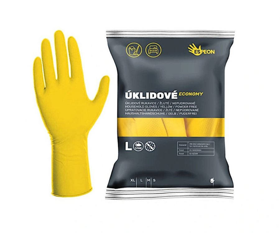 Úklidové latexové rukavice Espeon Economy jsou praktickou volbou pro každodenní použití v domácnosti i komerčních prostorách. Jsou vyrobeny z vysoce kvalitního latexu, který zajišťuje vynikající ochranu proti nečistotám, a zároveň nabízí skvělou pružnost a pohodlí při nošení. Diamantový vzor na povrchu dlaně a prstů zajišťuje výborné protiskluzové vlastnosti a pevný úchop. Vnitřní semišová úprava bez pudru pak usnadňuje nasazování rukavic. Tloušťka materiálu rukavic dosahuje až 0,40 mm a poskytuje tím odpovídající ochranu při práci a odolnost proti protržení. Další výhodou je potravinářský atest rukavic.