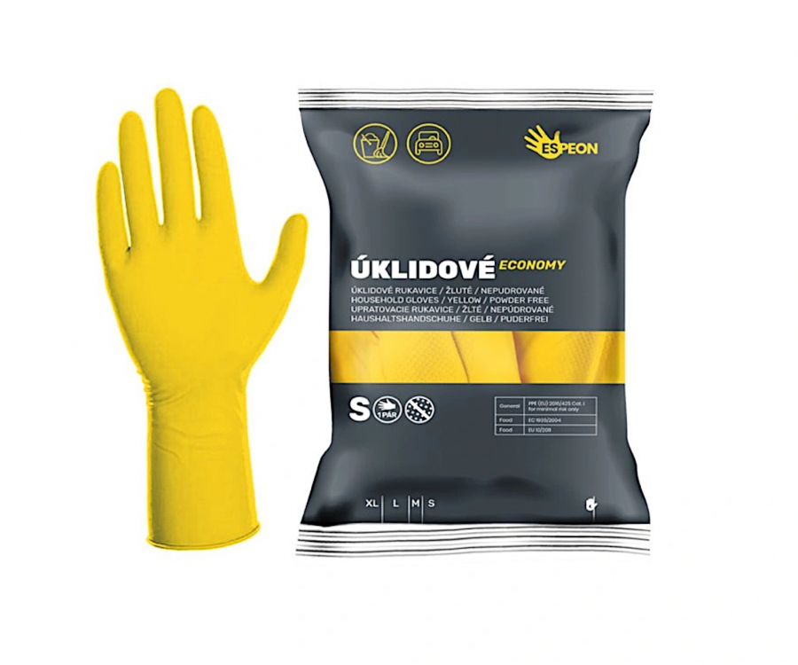 Úklidové latexové rukavice Espeon Economy jsou praktickou volbou pro každodenní použití v domácnosti i komerčních prostorách. Jsou vyrobeny z vysoce kvalitního latexu, který zajišťuje vynikající ochranu proti nečistotám, a zároveň nabízí skvělou pružnost a pohodlí při nošení. Diamantový vzor na povrchu dlaně a prstů zajišťuje výborné protiskluzové vlastnosti a pevný úchop. Vnitřní semišová úprava bez pudru pak usnadňuje nasazování rukavic. Tloušťka materiálu rukavic dosahuje až 0,40 mm a poskytuje tím odpovídající ochranu při práci a odolnost proti protržení. Další výhodou je potravinářský atest rukavic.