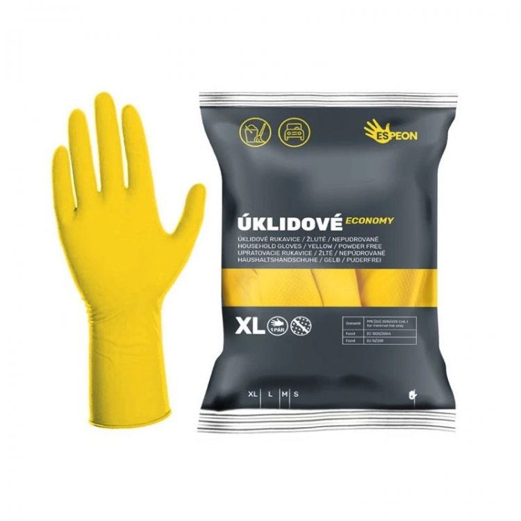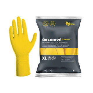 Úklidové latexové rukavice ECONOMY jsou spolehlivou volbou pro každodenní práci s čisticími prostředky, vodou i mastnotou. Vyrobené z kvalitního pigmentovaného latexu, nabízejí vysokou pružnost, pevnost a pohodlné nošení. Díky diamantovému vzoru na povrchu poskytují výborný úchop i v mokrém prostředí, zatímco vnitřní semišování usnadňuje nasazení a zvyšuje komfort při delším používání.