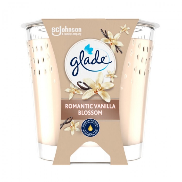 Glade vonná svíčka Romantic Vanilla Blossom a sladká vůně vanilky dokáže okouzlit vaše smysly. V kombinaci s vůní bílého dřeva a květin je dokonalou volbou pro všechny interiéry. Svíčka v moderní skleněné nádobě s obsahem esenciálních olejů je skvělá i jako dárek pro vaše nejbližší a vytváří příjemnou atmosféru v každém interiéru.