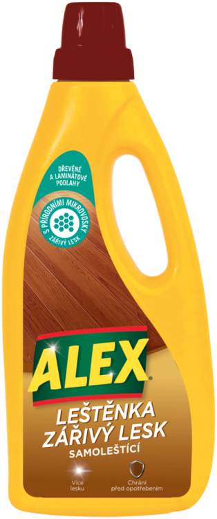 Leštěnka na dřevo a laminát Alex dodává podlahám zářivý lesk. Obsahuje přírodní mikrovosky, které dodávají povrchům nepřehlédnutelný lesk. Prostředek zpomalujte opotřebení podlah, napomáhá k ochraně podlahy proti škrábancům. Ideální na dřevěné, laminátové a plovoucí podlahy.