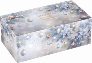 Třívrstvé kapesníčky Deluxo jsou jemné, měkké a zároveň pevné, vhodné pro každodenní použití. Vyrobeny ze 100% celulózy. Rozměry kapesníčku 200 x 190 mm. Praktická krabička s vánočním motivem umocní vánoční atmosféru ve Vaší domácnosti. Karton obsahuje 50 krabiček. Vánoční kapesníčky Deluxo jsou v lesklé pevné krabičce.