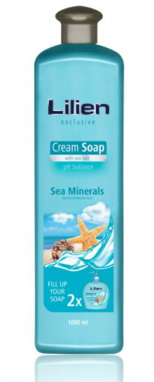Mýdlo Lilien s mořskou solí patří mazi naše oblíbené stálice. Nechte se unést vůní oceánu daleko od všedních starostí a dopřejte svým rukám dokonalou očistu, aniž by došlo k jejich vysoušení. Krémové tekuté mýdlo Sea minerals zanechává pleť krásně jemnou a hebkou. Tato litrová lahev skvělě poslouží samostatně i pro doplnění Vašeho dávkovače.