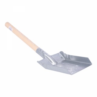 Lopatka na smetí, je vyrobena z  plechu s dřevěným držadlem.
