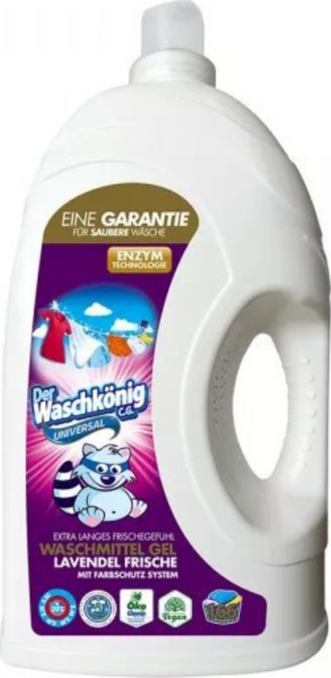 Waschkönig Universal je prací gel pro bílé a stálobarevné prádlo s formulí pro odstranění nečistot a skvrn již od 20 °C při zachování barev. Účinně odstraňuje odolné skvrn z tkanin při nízkých teplotách, chrání je před poškozením a zanechá příjemnou vůni. Gel obsahuje složky, které chrání vaši pračku před usazováním vodního kamene a korozí.