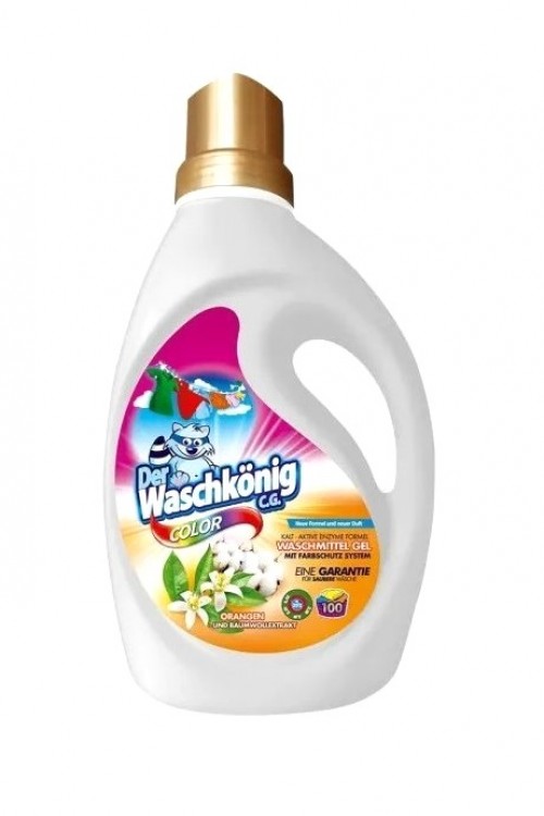 Německý Waschkönig prací gel 100 dávek Universal Orangen & Baumwolle extrakt 3 l je německý koncentrovaný prací gel vhodný pro brevné a stálobarevné prádlo. Výtažek z pomerančů a bavlny zanechává okouzlující citrusovou vůní. Teplotní rozsah již od: 20°C - 60°C. Inovativní technologie s aktivními složkami zajišťuje výborné prací výsledky, ochranu barev a vláken prádla. Zabraňuje vyblednutí barev. Proniká do hloubky vláken a účinně odstraňuje i odolné skvrny. Zanechává úžasnou vůní pomerančů a bavlny. Perte silou mývala. Německá kvalita. Vyrobeno v Německu.