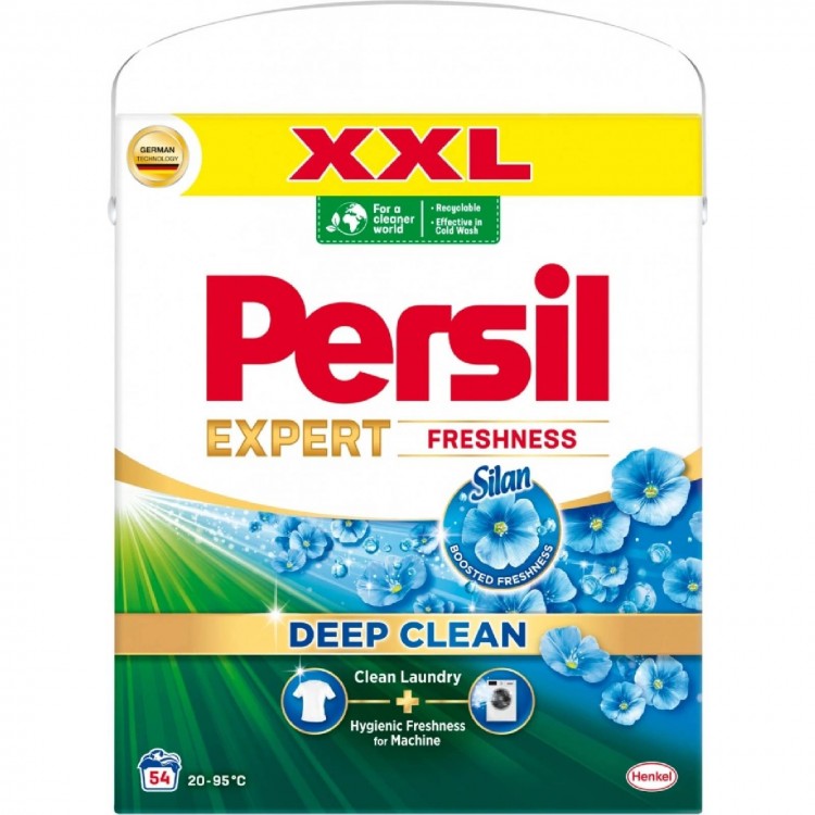 Prací prášek Freshness vám pomůže docílit dokonale čistého prádla s dlouhotrvající a svěží vůní Silan. Prášek je nyní vylepšen o technologii Deep Clean, která poskytuje hloubkové čištění prádla a hygienicky svěží pračku, kde účinně odstraňuje nepříjemné pachy. Jedinečné složení působí hluboko ve vláknech oblečení, aby odstranilo i ty nejodolnější skvrny a zároveň dodalo prádlu dlouhotrvající vůni. Prášek je účinný i při nízkých teplotách (20 °C), díky čemuž můžete ušetřit za energie. prací prášek zanechá prádlo zářivě čisté Deep Clean technologie proniká hluboko do vláken bojuje proti těm nejodolnějším skvrnám zanechává dlouhotrvající svěžest Silanu prací prášek je vhodný na bílé a stálobarevné prádlo 100% recyklovatelný obal toto rodinné balení prášku vystačí na 54 praní 5 - 15%: aniontové povrchově aktivní látky, < 5%: neiontové povrchově aktivní látky, fosfonáty, polykarboxyláty, zeolity, mýdlo, Add.Ingred: Enzymy, optické zjasňovače, Parfémy, Linalol