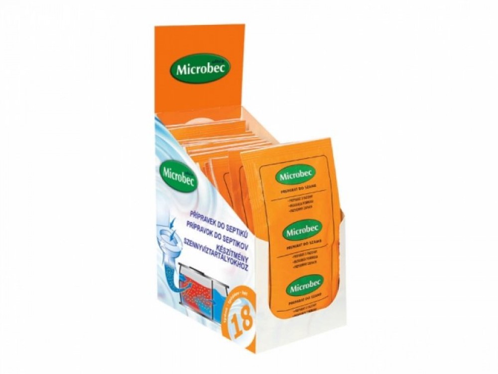 Microbec do žump - mikrobiologický enzymatický výrobek, který je určený k biologické likvidaci obsahu odpadních jímek. Při pravidelném používání omezuje frekvenci vyprazdňování odpadních jímek a zvyšuje účinnost domácích čistíren odpadních vod. Výborně eliminuje nepříjemný zápach a zprůchodňuje soustavu sanitárních rozvodů.
